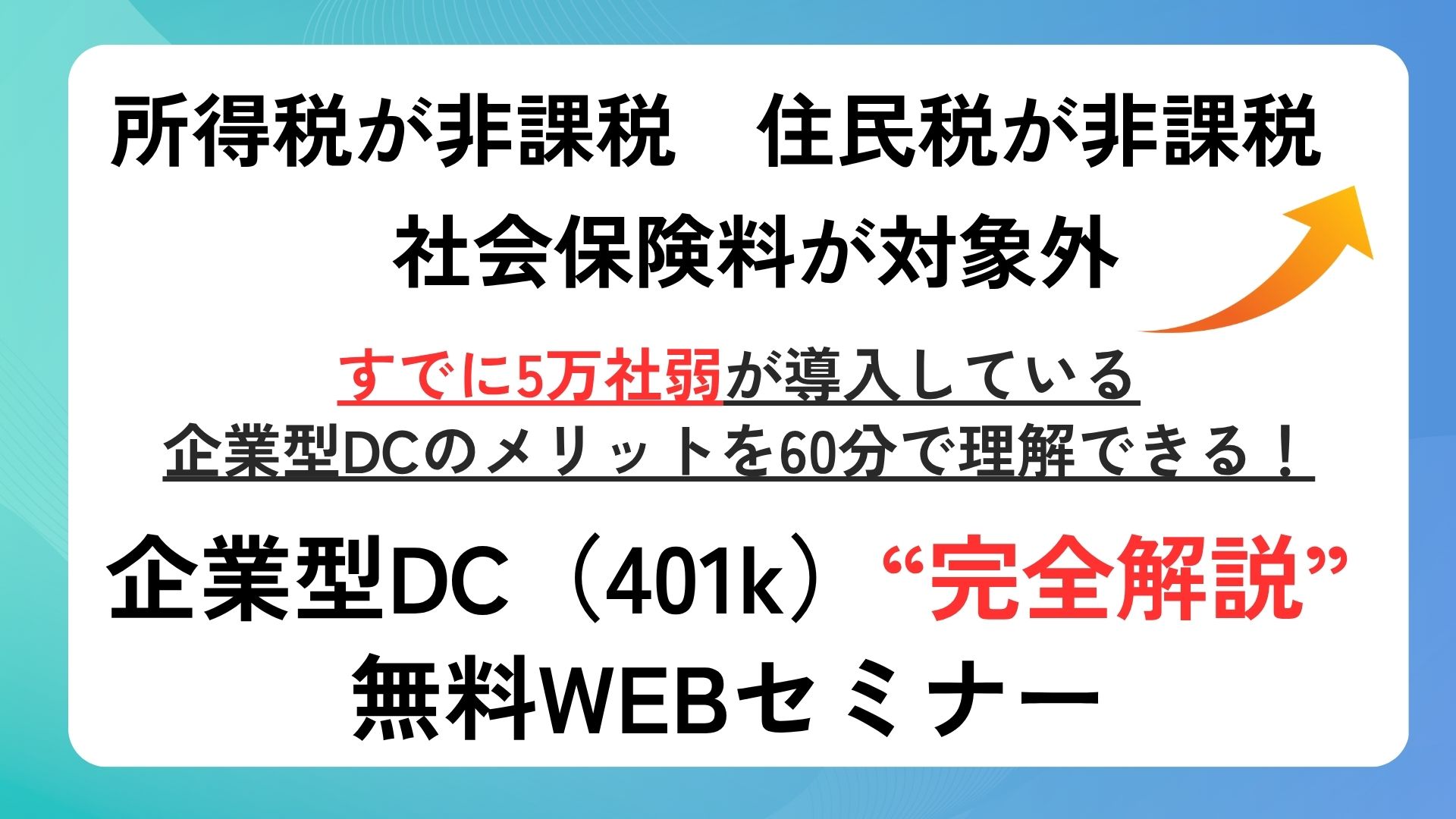これは国が推奨している制度ですが、ほとんどの中小企業の社長はまだ知りません。そこで、この度、中小企業の社長にあまり広まっていない国のすごい優遇制度「企業型確定拠出年金」についてわかりやすくお伝えする勉強会です。
