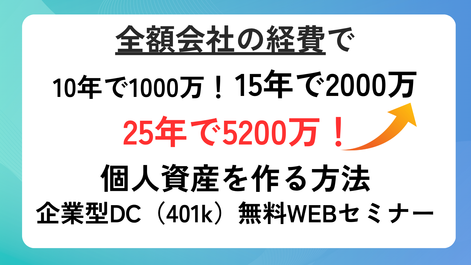 これは国が推奨している制度ですが、ほとんどの中小企業の社長はまだ知りません。そこで、この度、中小企業の社長にあまり広まっていない国のすごい優遇制度「企業型確定拠出年金」についてわかりやすくお伝えする勉強会です。