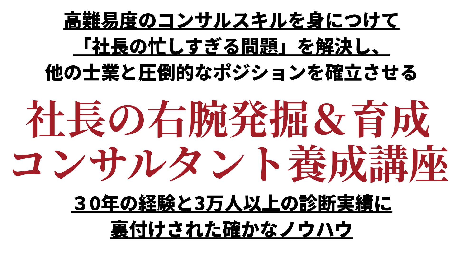 また、社長の右腕を発掘するための人材診断は、講師の長年の経験に裏付けられた実績データと行動経済学を取り入れた他に類を見ない方法です。潜在幹部発見率 78%のノウハウを学ぶ良い機会と思います。