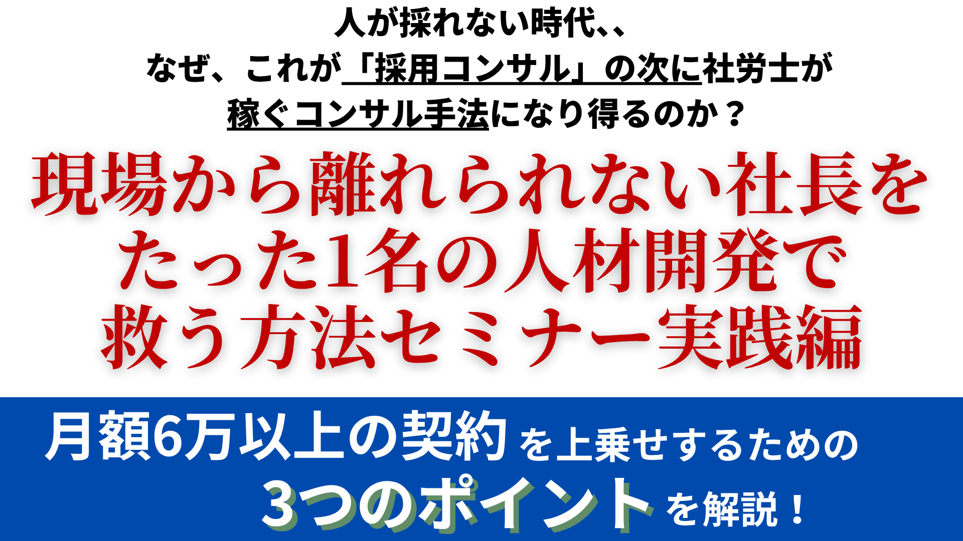 「中小企業にこそ“右腕”が必要だ」という信念のもと、本講座では、社労士・士業・経営者が現場で使える“右腕育成ノウハウ”を初公開。